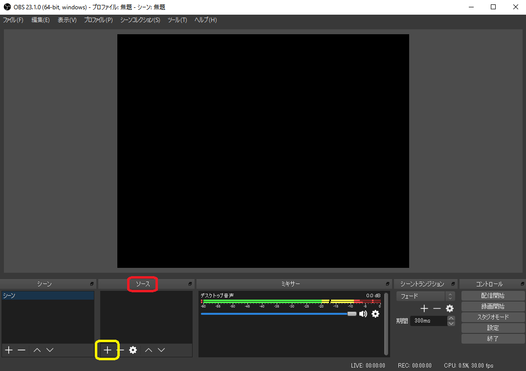 ■Webカメラ ソース の + をクリックします