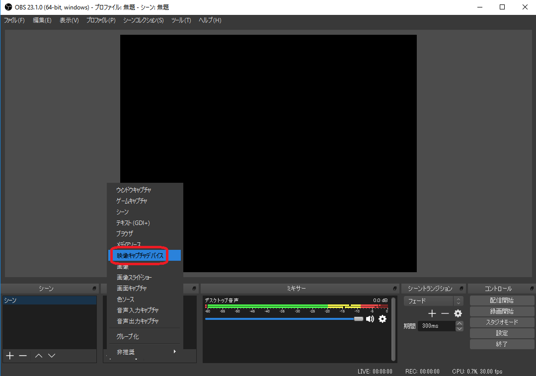 映像キャプチャデバイス をクリックします