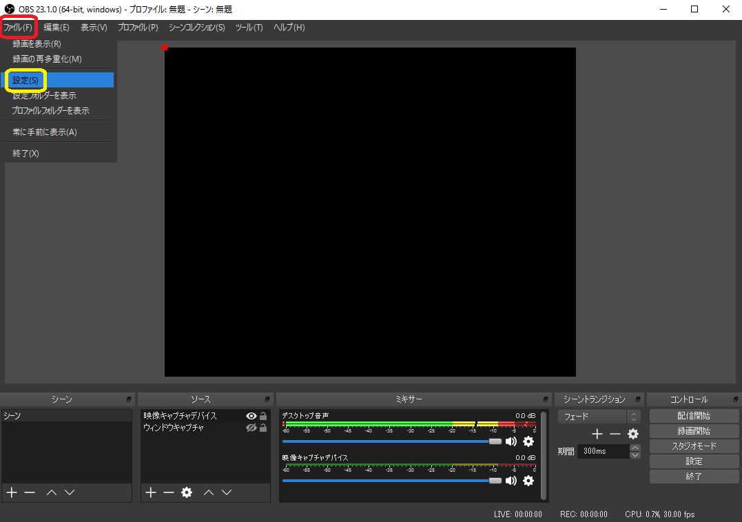 ファイル をクリックし 設定 をクリックします
