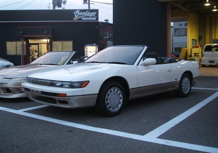 1980年代後半から末にかけて日産車のデザインは日本車をリードするものであった なかでも1988年に登場したS13型と呼ばれるシリーズ5代目のシルビアは 完成されたデザインでその頂点に立つと言っていい 当時人気の絶頂にあったホンダのプレリュードの市場を強く意識したスペシャリティモデルで アートフォースシルビア と日産が名づけたように そのスタイリングの美しさを前面に出しデートカーとして若年層にアピールした ターボモデルのK's 自然吸気のQ's & J's という3グレード構成で 前期型はCA18型1.8L直4DOHCを 後期型はSR20型2L直4DOHCを搭載した 市場における反応はデビュー当初こそ日産の思惑通りであったが 時代はRV人気によるスペシャリティカー受難期に突入しており 結局は貴重なコンパクトFRスポーツとして デビュー時のイメージとはかけ離れた 走り屋系 のクルマという評価を高めていく オーテックジャパン製のコンバーチブルモデルも設定されていた